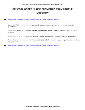 [UniqueID] - Read GENERAL SCOPE NURSE PROMETRIC EXAM SAMPLE QUESTION mobipocket